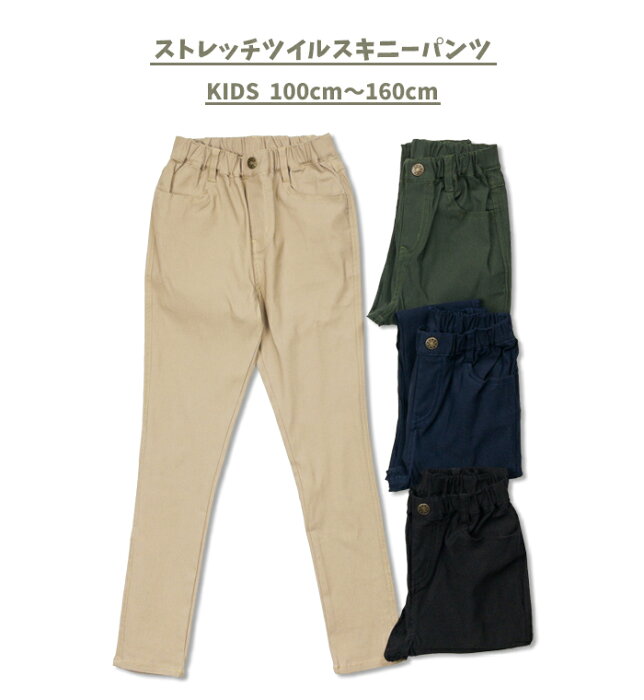 送料無料 あす楽対応 子供服 キッズ スキニーパンツ ストレッチ ロング 無地 ボーイズ ガールズ 男の子 女の子 男児 女児 100-160 [11 ブラック] [84 ベージュ] [74 ネイビー] [64 カーキ] 13010022